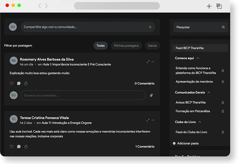 Você poderá participar de um fórum de conversa, onde poderá conversar, trocar experiências e pedir ajuda para todos os membros do IBCP Theravita.